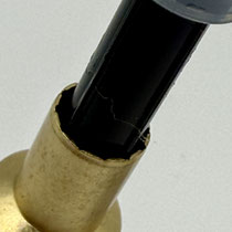 An der Kolbenmechanik erkennt man jedoch deutlich, dass es sich nicht um einen Montblanc handeln kann. Am Kragen des Messingteils befindet sich eine extrem scharfe Kante, an der man sich sogar verletzen könnte. So etwas kommt bei Montblanc nicht vor.